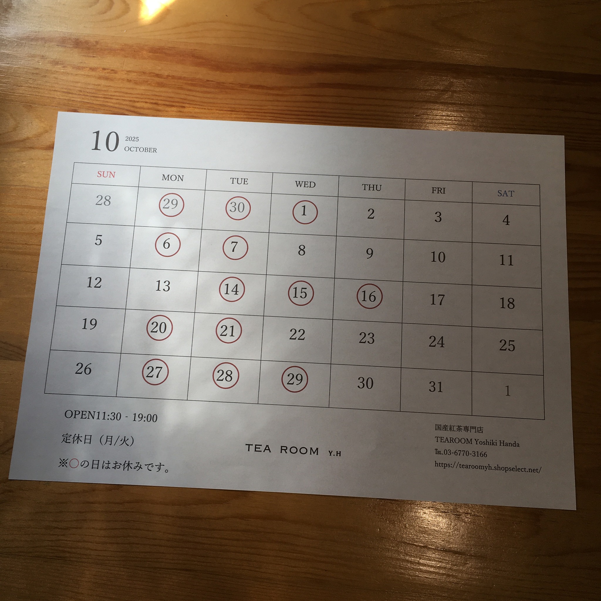 2025年10月休業日のお知らせ | 国産紅茶専門店/TEAROOMYoshikiHanda/ティールームヨシキハンダ